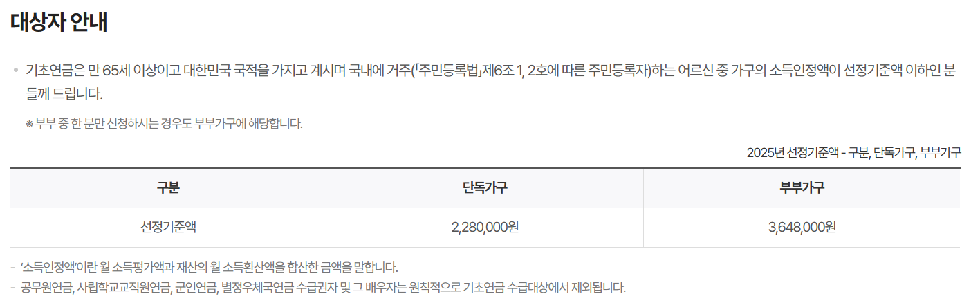 2025년 기초연금 기준 요약
