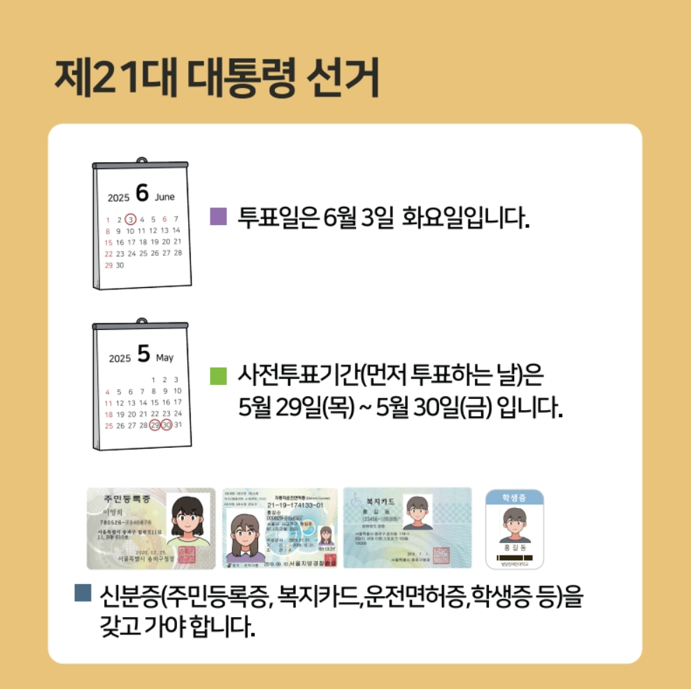 2025년 제21대 대통령 선거를 앞두고 사전투표 일정, 장소, 준비물까지 핵심만 정리했습니다.